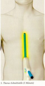 5.) Thorus-Schnittstelle / Solarplexus für 2 Minuten - es kann zu einer starken Wärmeentwicklung nahe der Thymusdrüse kommen.