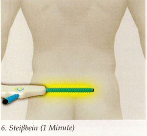 6.) Steißbein - bei der ersten Befeldung für ca. 5-10 Minuten, bei erfahrenen Anwendungen reichen i.d.R. 2 Minuten für die Aktivierung. Bei einer längeren Befeldung von Punkt 6 (für ca. 20-30 Minuten) konnten sehr oft folgende Reaktionen beobachtet werden: