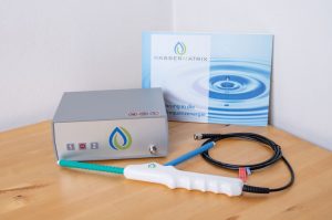 - Wenn Sie die Stabantenne verwenden (siehe Bild, im weiteren Verlauf auch Handsonde genannt) dann müssen Sie darauf achten, dass die abgewinkelte Antenne - je nach Modell ist diese blau oder schwarz - immer von Ihrem Körper wegzeigt und Sie NICHT berührt. Nur so kann die Energie mit dem richtigen Potenzial fließen.